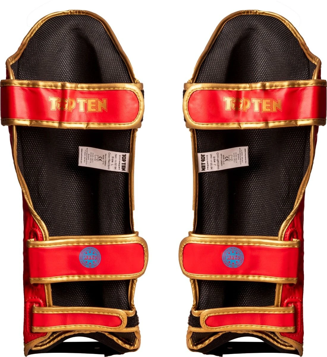 A festival of colors celebrates TOP TEN with the shin and instep guards “Star Light”. The typical TOP TEN Company Print is applied in expressive colors on the black, durable PU artificial leather surface.